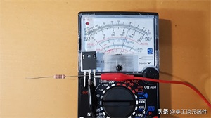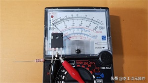 4)用电阻的脚在 G 印脚和 C 引脚之间临时连接,万用表的指针向前移动到低电阻,如下图所示。
