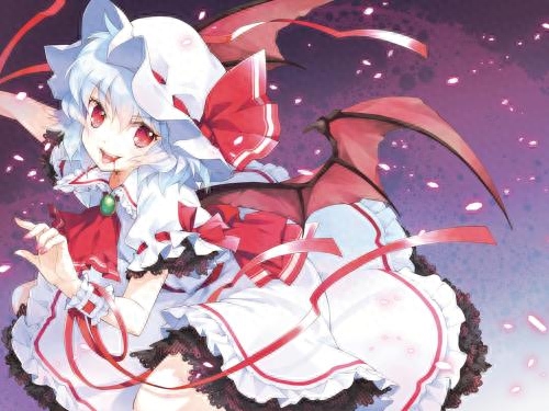 蕾米莉亚是500岁的吸血鬼领主,夜之王。她是红魔馆的主人,芙兰朵露的姐姐。