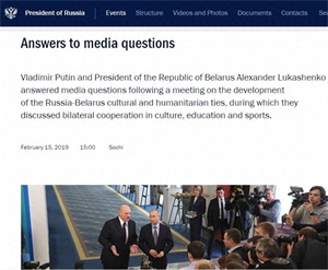 原来是上周白俄罗斯总统卢卡申科到访索契,在访问的第三天也就是2月15日的时候,卢卡申科与普京在会谈结束后出席了记者会。面对一名记者关于白俄联盟的前景和白俄罗斯国家主权的问题时,卢卡申科忽然就说出了这样一句话: