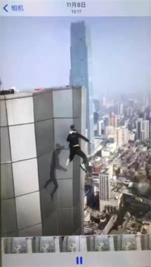 在随后发布的吴永宁从大楼坠落的视频中,吴永宁进行了两次尝试。在第一次尝试之后,出于某种原因,他回到了顶层平台。