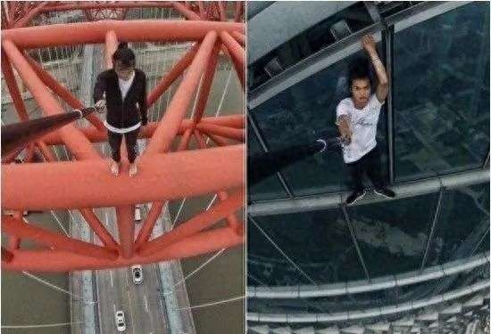 在没有任何防护设施的情况下,吴永宁在这些危险的地方用生命赚取“粉丝量”