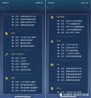 在TAiQ应用中,可以看到一些主流的发问指令,但这并不是所有哦,你还可以自己探索和发掘。可以向吕布下达诸如闹钟和提醒、新闻播报、将笑话或是闲聊、生活类查询、星座、FM、翻译、音乐播放等多种指令,瞬间多了一位贴心的生活小秘书任你差遣。