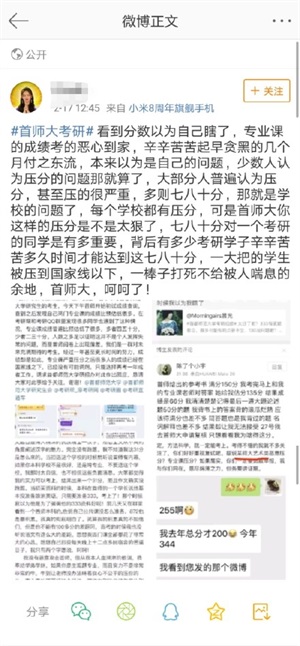 多名考生曝首都师大压低考研成绩,愤然:“一年努力全白费了!”
