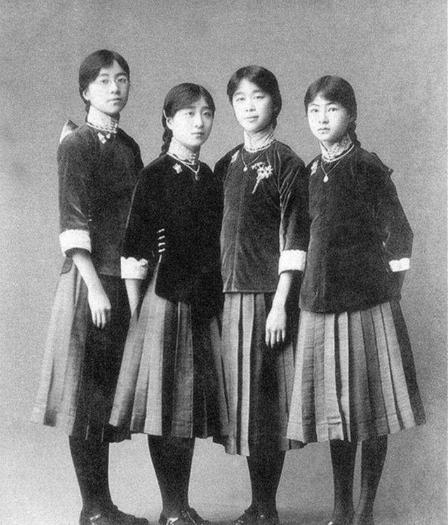 3、林徽因8岁。这一年,林徽因随家人迁居上海,居住在虹口区金益里,她和表姐妹们一起,进入爱国小学,入二年级学习,她在这里读书4年。这是与表姐妹们的合影,林徽因居最左。