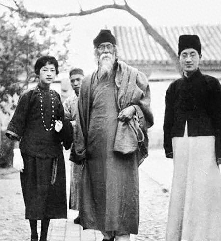 6、林徽因20岁。这年4月,泰戈尔访华,林徽因与徐志摩担任泰戈尔的随行翻译,这是三人的合影。这张照片被徐志摩一直珍藏,直到空难去世。