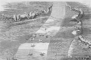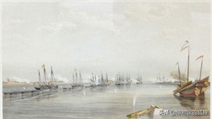 英军舰艇被木桩封锁线所阻挡,遭到炮台火力夹击