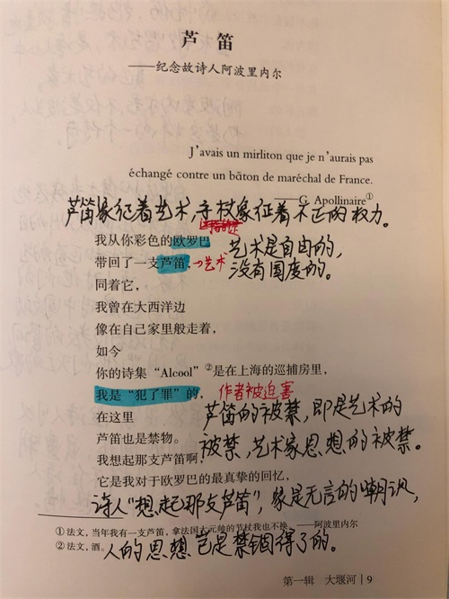 今天批注的是第19页《芦笛》——纪念故诗人阿波里内尔。
