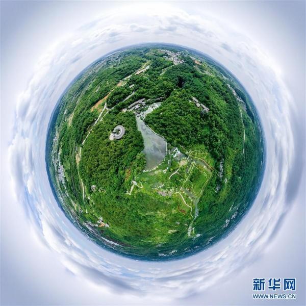 6月9日拍摄的贵阳市天河潭旅游度假区全景(无人机照片)。 夏日的贵阳市天河潭旅游度假区草木苍翠,风景如画,吸引游客来此休闲游玩。 新华社记者 欧东衢 摄