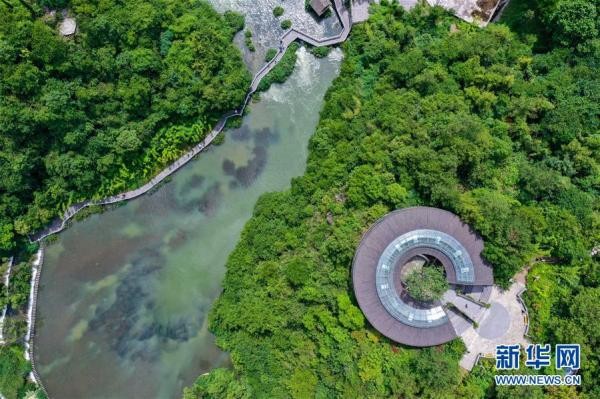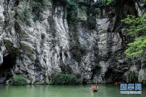 6月9日,游人在贵阳市天河潭旅游度假区游玩。 夏日的贵阳市天河潭旅游度假区草木苍翠,风景如画,吸引游客来此休闲游玩。 新华社记者 欧东衢 摄