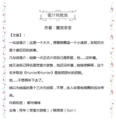 今天推荐一波经典电竞甜文,废话不多说,上文!