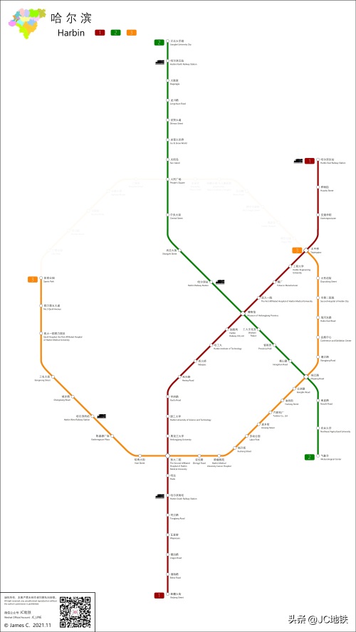不过从2021下半年开始,哈尔滨地铁就像突然按了加速键一样,终于有新鲜血液,9月份通了一条全新的2号线,而同年11月又把3号线通了一大半,再过两三年也许就能成环啦!