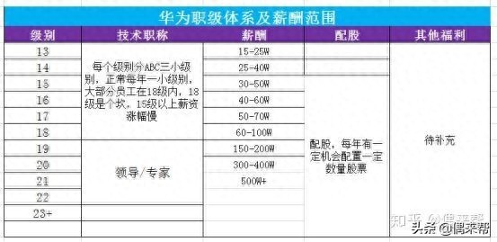 18级是重要分水岭,越过去后就是领导/专家。正常来讲,华为员工每年可以升一小级,工资每年一涨,不过15级以上工资涨得较慢。当然,业绩特别突出的员工,也可以一年涨一大级甚至连跳二三级。