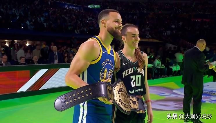 另外,库里与约内斯库的三分球大战也备受关注,库里是NBA的三分神射手,约内斯库是WNBA的三分神射手,两位三分神射手的决赛把全场气氛推向高潮!约内斯库率先出场,发挥不错,拿到了26分,追平了刚刚夺得三分大赛冠军的利拉德。最后库里压轴出场,全场欢呼时不断,稳定地拿到29分成功夺冠,随后库里跳舞庆祝,场边的阿耶莎乐开花了!