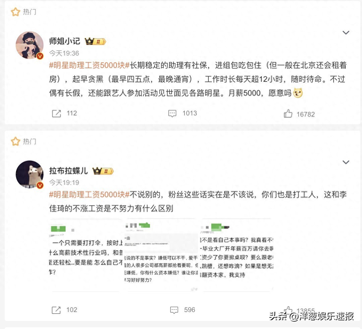 一条 明星助理工资5000块,冲上热搜,引起无数人共鸣