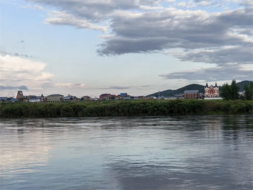 室韦,是呼伦贝尔盟最西北的一座小城,在额尔古纳河的右岸,左岸是俄罗斯。我是循着迟子建的小说《额尔古纳河右岸》,来到这里的。早晨从满洲里出发,开车四百多公里,下午到达,住宿好找又不贵,主街全是吃饭住宿的地方。小镇居民一千多,游客人很多。沿河修了人行道,隔河能望见俄罗斯的村庄,河右岸中方建筑色彩斑斓靓丽,木克楞豪华大气,风格比俄罗斯还俄罗斯;河左岸房屋陈旧寂静,只有炊烟袅袅升起;河右岸的人熙熙攘攘,照相机,、望远镜指向对岸,河左岸有两位闲坐的人,朝花了75块钱一张船票的右岸游客一招手,船上的人就沸腾高喊,乌拉、ok、你好,此起彼伏。
