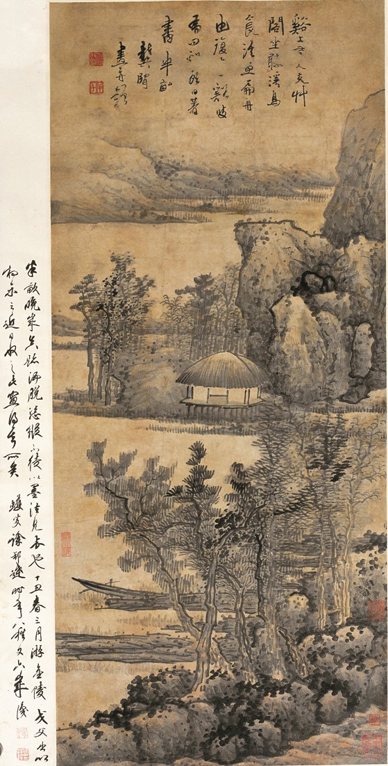 清 龚贤《溪山草阁图》纸本91×40cm 爱莲居藏