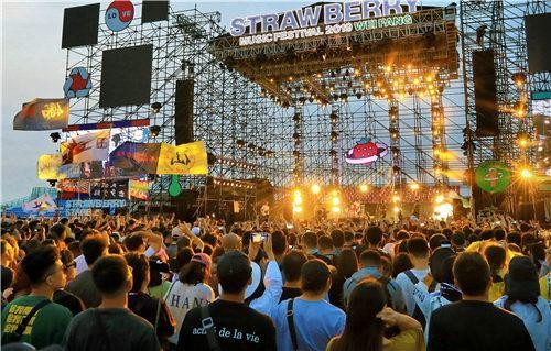 草莓音乐节是亚洲最大的音乐节,也是中国规模最大的音乐类青年活动。此次潍坊滨海草莓音乐节现场还设置了创意市集、Meme广场、涂鸦、餐饮街等特色体验活动板块,塑造出全方位沉浸式体验空间。