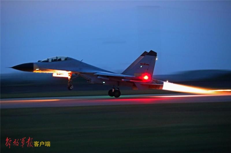 数架战机在夜色下呼啸升空