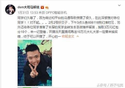 芜湖大司马最近跳槽消息不断,中间也是经历很多挫折,如今微博再次宣布在斗鱼复播,看到之前德云色提到的2000万年薪与平台谈拢了。