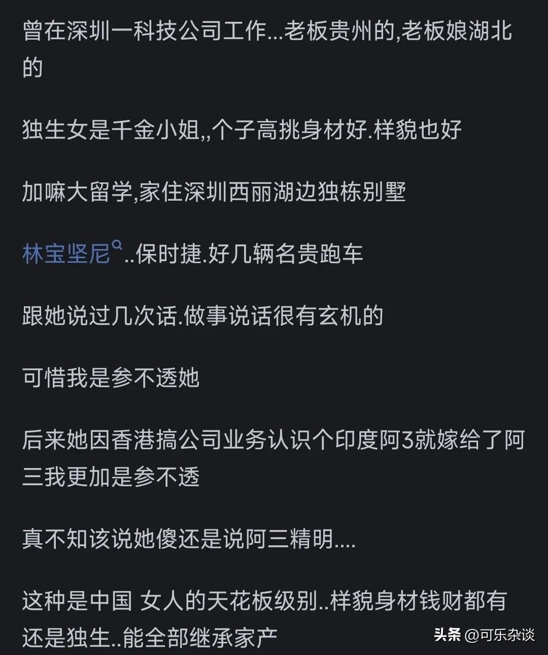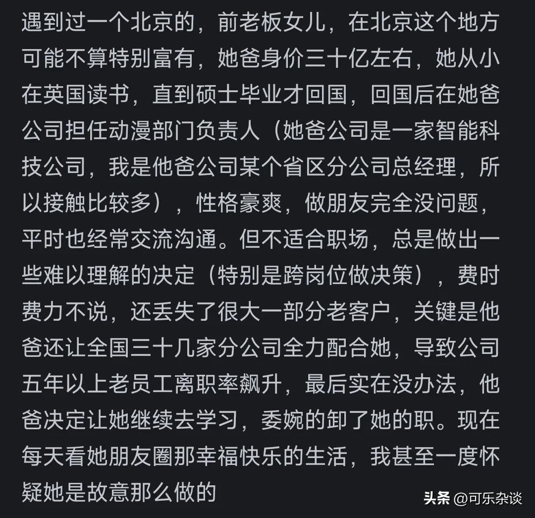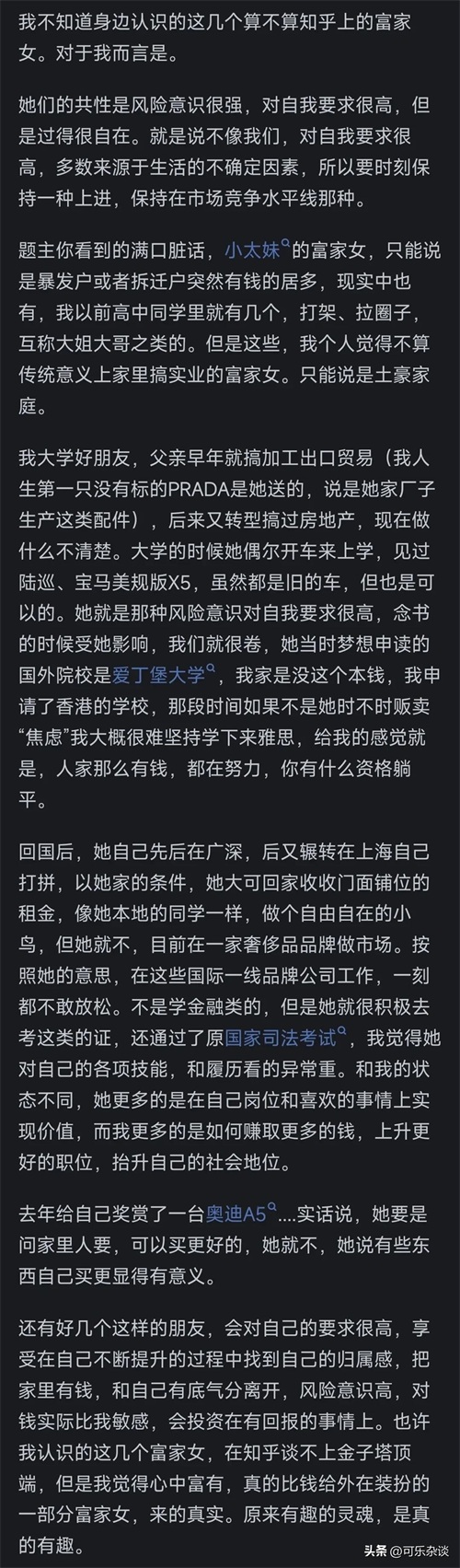 我觉得她已经是各种不同意义上的“富”家女了,身边虽然说认识许多富家女,但是她让身边的人变得更好,是非常有意义。