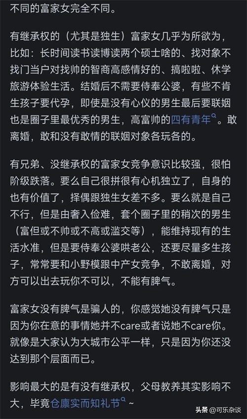 确实富家女基本没有心机女,大大方方的有话直说,喜欢也直说,讨厌也直说,想做什么想要什么都会直说。