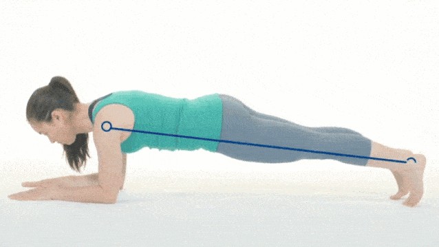 若要经得起较长时间自重支撑压力的考验,就要有肌肉的耐久力和精神上的意志力。而标准的平板支撑姿势是,必须俯身让躯干和腿伸直,分别以两前臂紧贴支撑和以两腿前脚掌或脚趾着地,使头、胸、腹、腿悬空,让头、肩、背、胯和脚踝处于同一直线上。