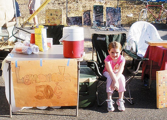 这位7岁的俄勒冈州女孩不久前在一个地方集市上售卖柠檬水,并且做得有板有眼,她用洗手液洗净双手,将瓶装水和浓缩柠檬汁混合在一起,再用勺子盛入冰块。没过一会儿,她的生意就开张了。