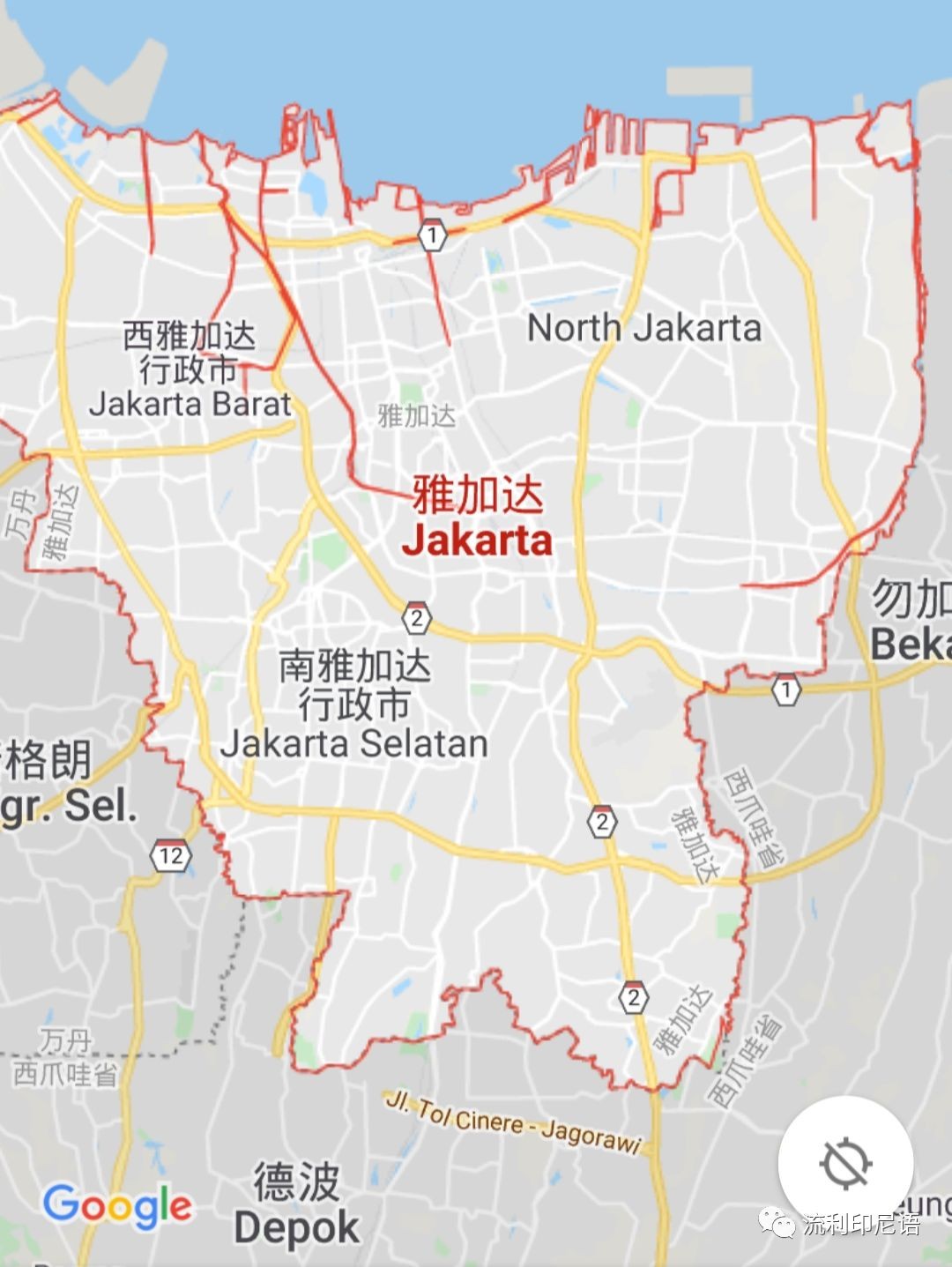 从地图上看雅加达像一个倒三角形,这座城市分为东、南、西、北、中五个城区。