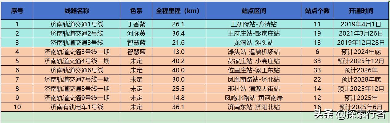 济南轨道交通线路详情列表