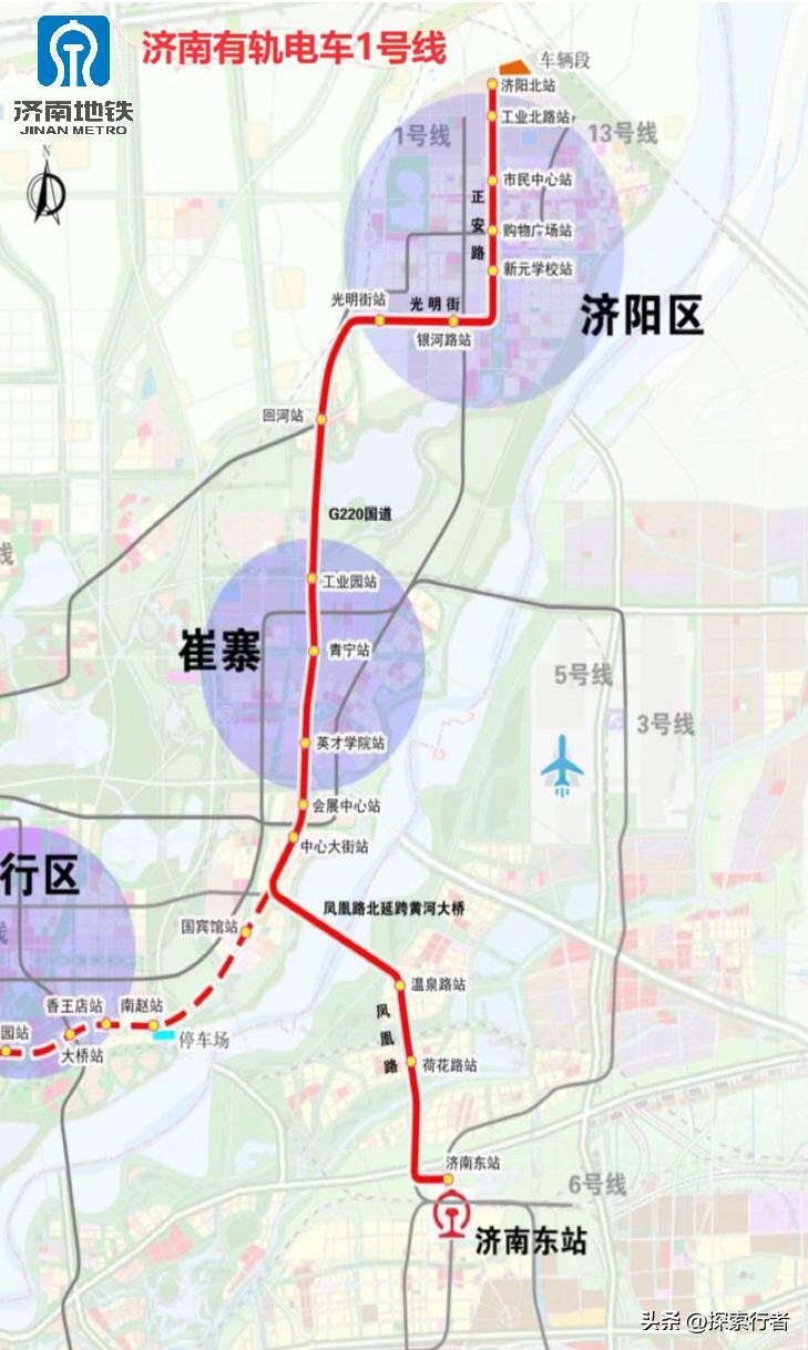 济南有轨电车1号线线路图-在建线路