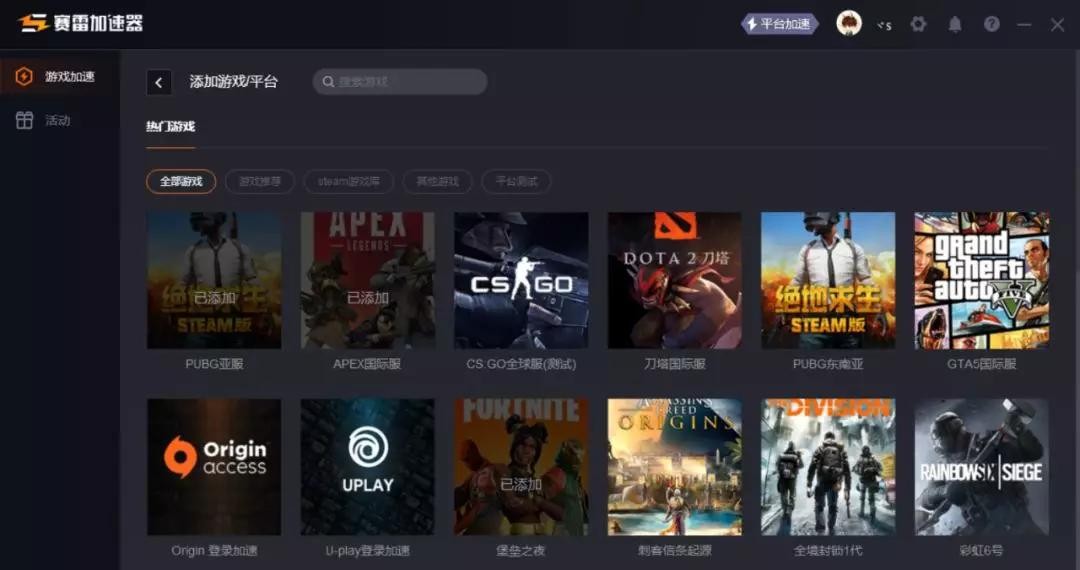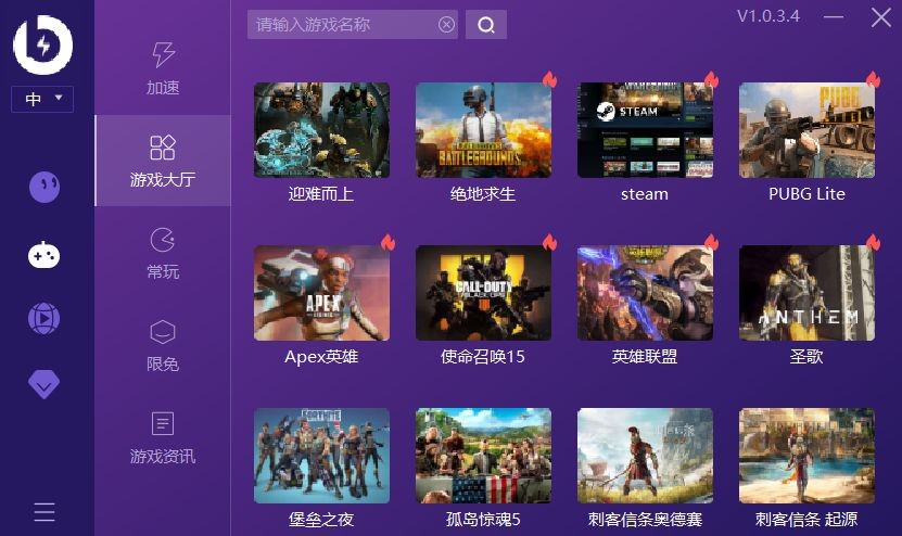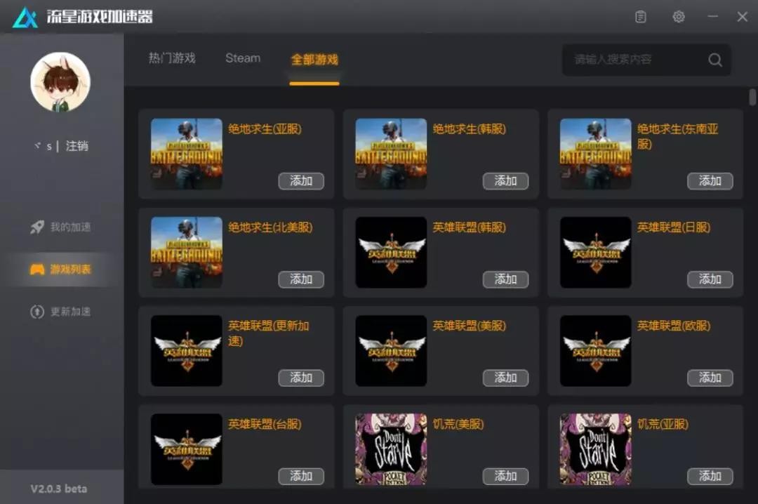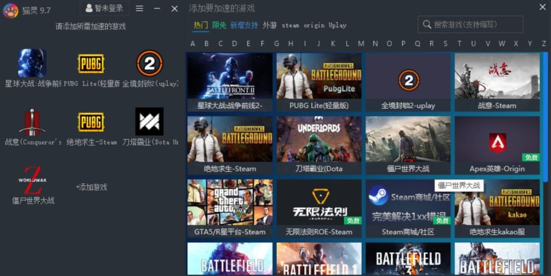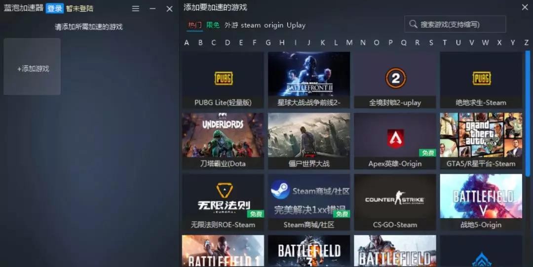 这款加速器基本涵盖了主流的游戏,包含PUBG亚服、无限法则、堡垒之夜、彩虹6号、怪物猎人:世界、刺客信条起源等等。如果有玩这些steam游戏的可以下载 使用QQ登录就可以直接使用。