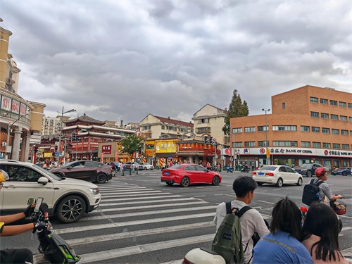 在繁忙的年家浜路与康沈路交界处,眼前是串流不息的车辆和骑车的行人。