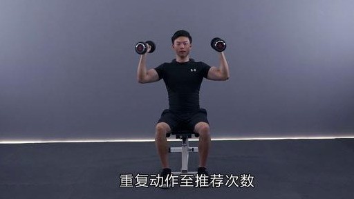 4.最后,就是你熟悉的坐姿推肩模式,注意在向上推的时候,可以想象大臂紧贴耳根的感觉。