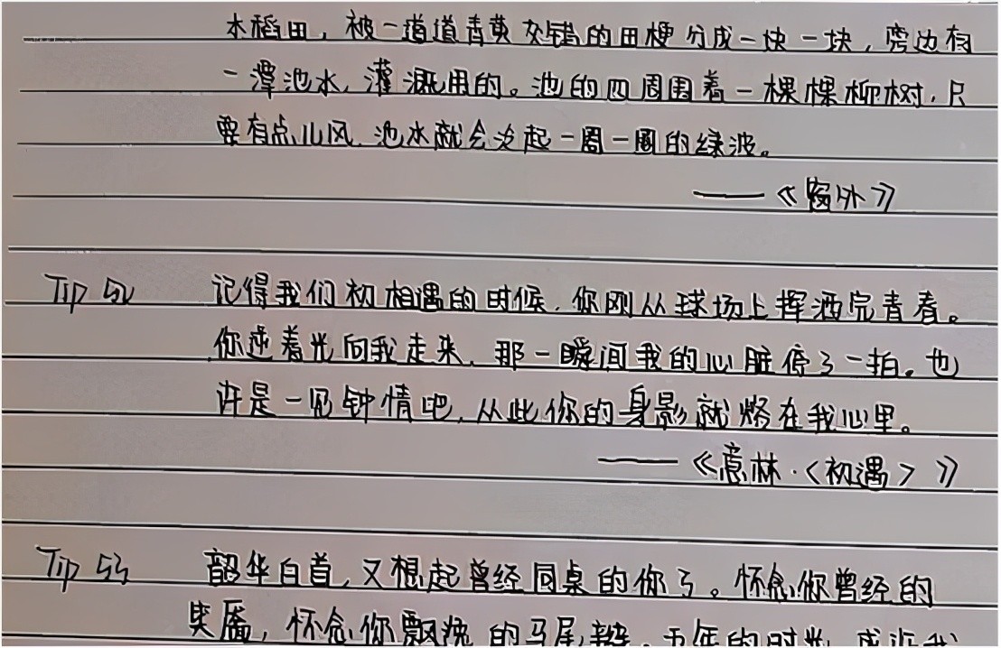 “衡水字体”所书写的英文整整齐齐,大小几乎一样,且整篇都没有划划改改,让人看起来赏心悦目。值得一提的是,没有划改,也是练习衡水字体的要求之一。