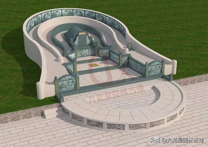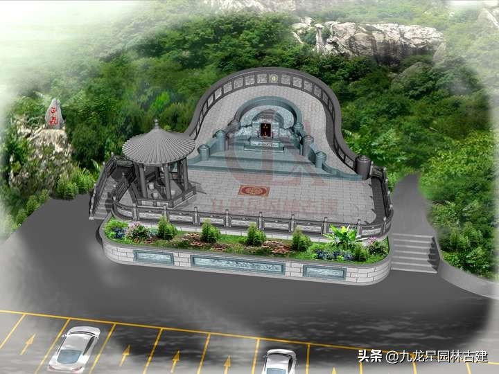 下面,我们将通过几张农村墓地设计效果图来展示坟墓石材整套的应用效果。