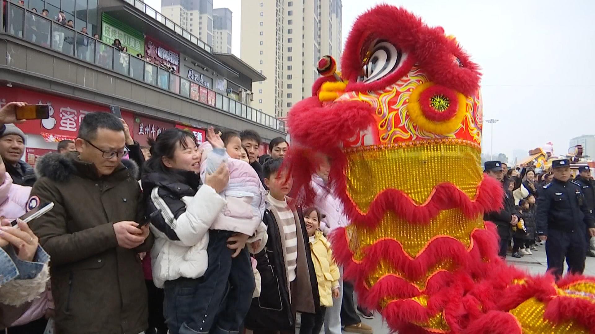 “摸摸狮头,鸿运当头;摸摸狮尾,顺风顺水。”当天下午,在雨润广场、吾悦广场门前,精彩纷呈的龙狮表演,吸引了众多民众前来观赏。随着锣鼓的敲击声,表演者腾空而起,舞动的狮头栩栩如生;一条巨龙盘旋舞动,舞龙者们步伐整齐、配合默契,龙身蜿蜒起伏、流畅自然……栩栩如生的表演瞬间开启浓浓中国年味,辗转腾挪间,观众的欢呼声和掌声此起彼伏,纷纷举起手机记录起来。