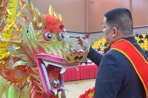 依照传统习俗,现场还为即将登场的龙狮点睛,祈求新的一年风调雨顺、五谷丰登、国泰民安。