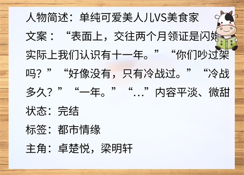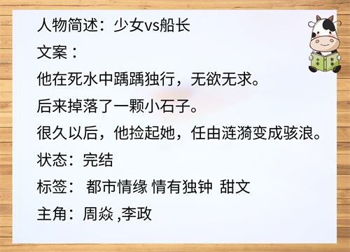 女主撩拨男主的整个过程非常精彩,麻麻得很有爱呀!冷门文,但文笔很好,逻辑清晰,暖暖的小短文,强推!结局he。