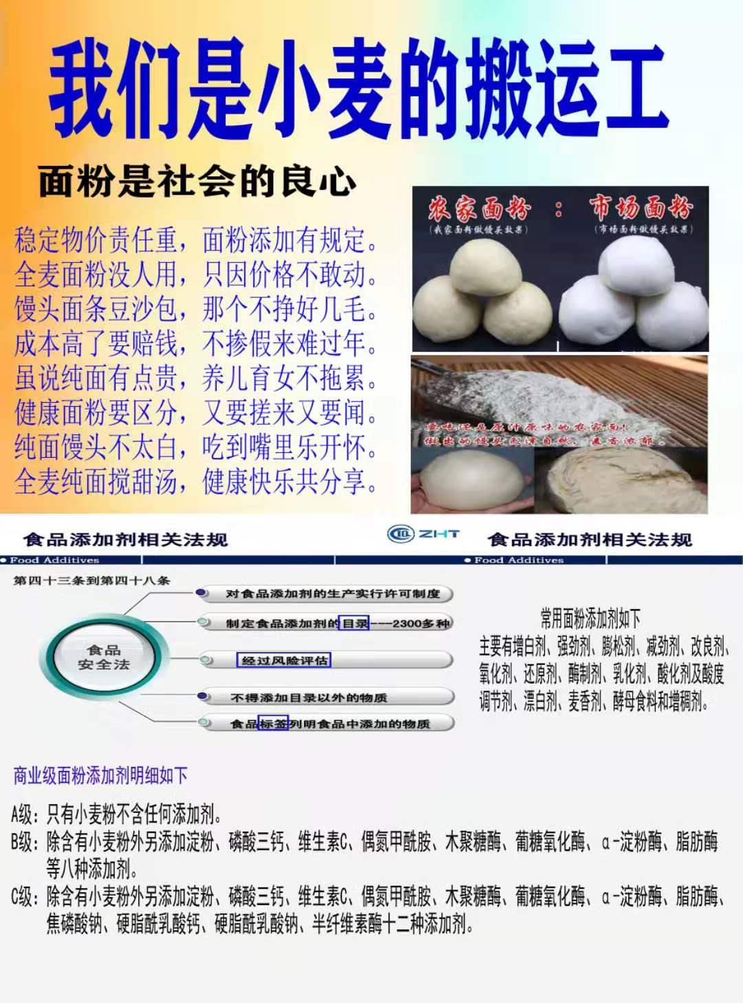 麦皮粉颜色比较黑,所以也不放到专业的馒头专用粉中,但是麦皮粉有麦芽、维生素等,也不亚于麦芯粉的营养价值,其淡淡的甜味也和麦皮粉有一定关系。在麦中粉的基础上还要添加淀粉、磷酸三钙等8种添加剂,C级面粉需要添加12种添加剂。所以纯麦中粉的比例中还还有合法的食品添加剂,小麦原味的比例当然又被稀释了一次。