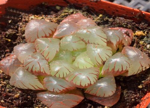 玉露大多数都是一个色调,看久了难免会审美疲劳,像这些红色的另类玉露来调节一下色彩是非常棒的,除非它们因为养护不当而变成红色的,那就必须要进行处理了。