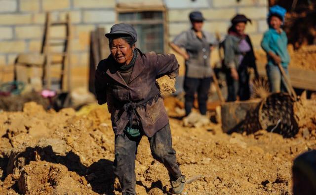 这就很奇怪了,男人作为家里的“主要劳动力”,不是正应该扛起一家的大旗吗?怎么这种粗重的体力活,让女人、孩子在忙活呢?