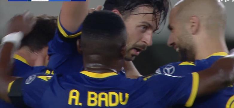 本赛季意甲3支升班马只有维罗纳的成绩不错,莱切和布雷西亚都是深陷降级区,布雷西亚几乎赢锁定降级。回归首战,坐镇本特戈蒂球场的维罗纳取得了良好开局。第13分钟,维罗纳前场左侧连续配合,拉佐维奇和博里尼多脚传递后,拉佐维奇禁区边上送出精准传中,门前迪卡米尼抢点头槌攻门得手,维罗纳1:0首开纪录。