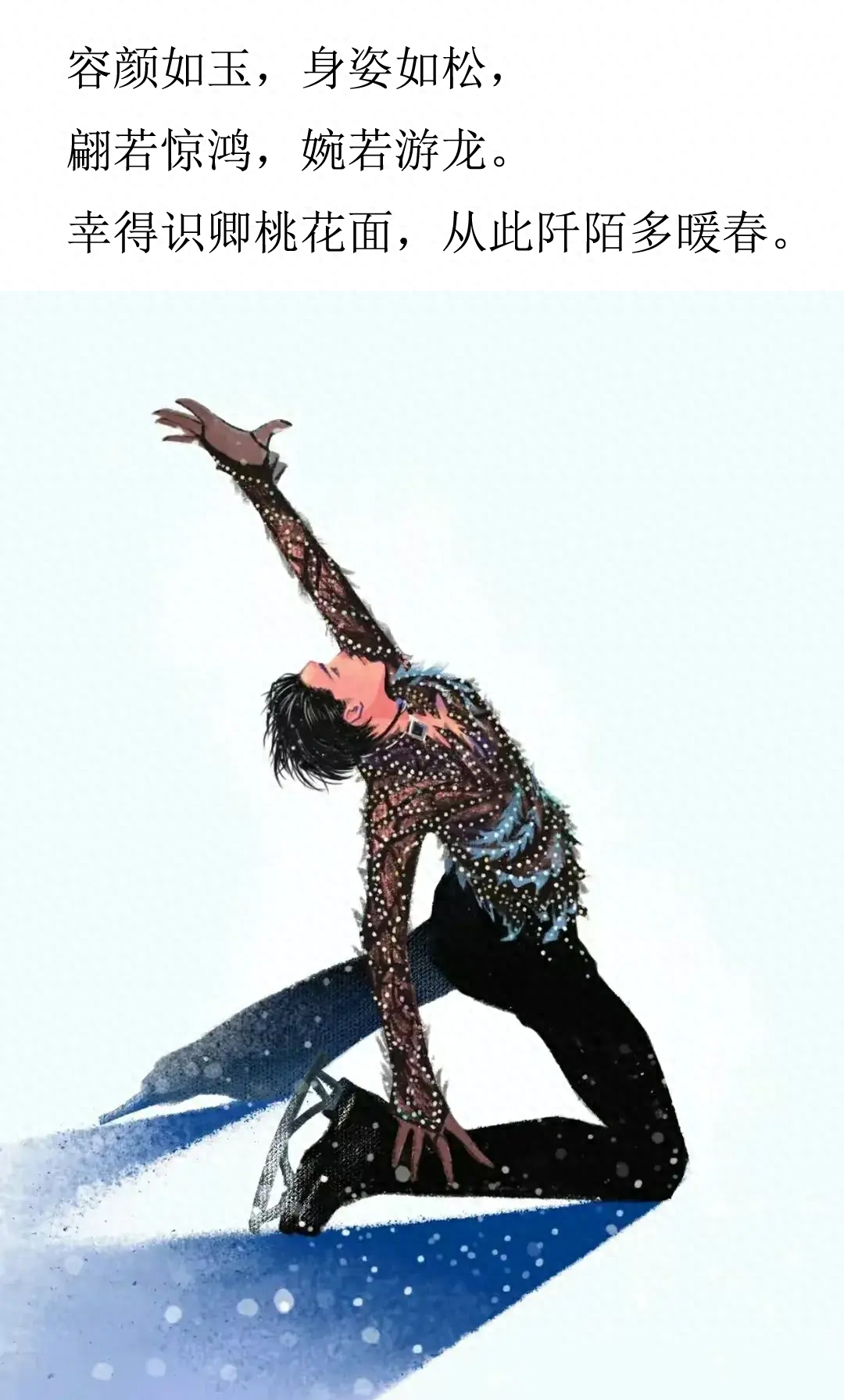 除了国内自媒体上流传的羽生结弦花样滑冰表演集锦,最令人印象深刻的就是央视送给他的诗画一般的解说词。