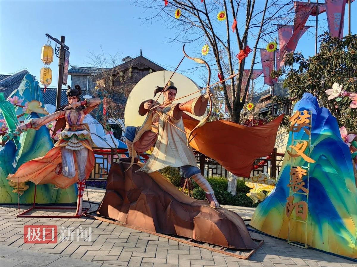 襄阳华侨城奇幻度假区无人机表演再现武侠名场面,夜幕降临无人机矩阵勾勒出郭靖会挽雕弓如满月的经典形象,郭靖、黄蓉NPC巡游引得众多游客争相打卡。汉江游轮增设侠义襄阳背景板,船行江中,与浩浩荡荡的一江碧水、巍峨耸立的古城墙来一张侠客照,成为游客竞相追捧的汉江游轮新春限定玩法。襄水街百米金庸武侠墙绘、《射雕英雄传》真人互动,点燃了众多游客心中的武侠梦。