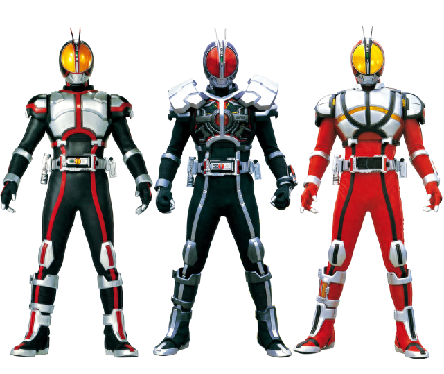 东映在555这部剧的形象设计方面更是前卫大胆,手机化的变身道具,变身者的不唯一,前卫的科技皮套以及华丽的打斗特效都将这部剧在平成早期推到了一个难以企及的高度。