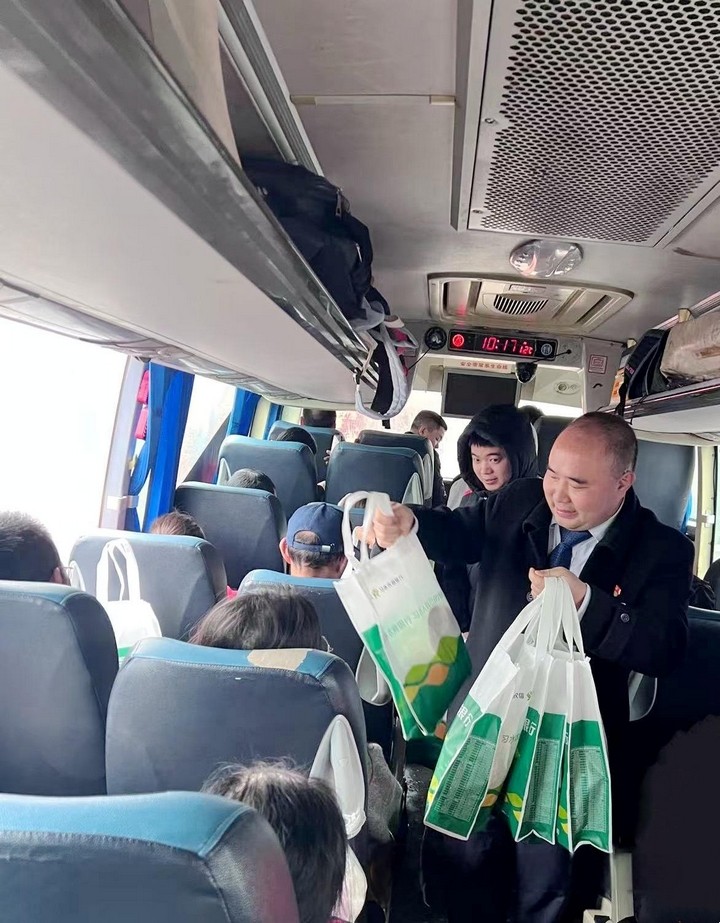 上午10点,习水县希望城时代广场格外热闹。来自全县各地的务工群众带着对新一年工作的期待坐上免费的务工专车。县人社、公安、交通和农商行等多方联动,通过发放资料、现场答疑等方式,为务工群体开展禁毒、反诈、人社政策、金融服务、外出务工政策等宣传,农商银行为外出务工群众发放了300余份大礼包。