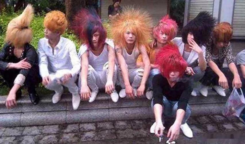 杀马特的造型实在是让人难以忽视。他们头顶不羁的彩色发型,丰富多彩的纹身,还有那些与众不同的穿着,简直就像是从另一个世界穿越而来的。你在大街上看到一个人头上插着十几支竹签,身穿五颜六色的花裤衩,脚踩着滑板鞋,那可不是什么奇迹,那就是杀马特。