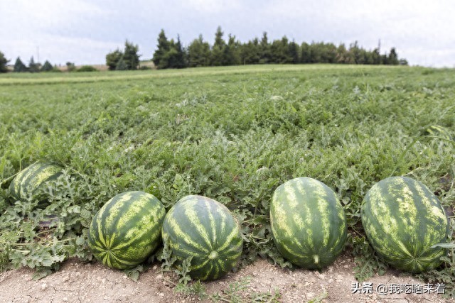 搁西瓜地里散步,那左右两边长着的,不就是一个个绿油油、圆滚滚的大西瓜么。