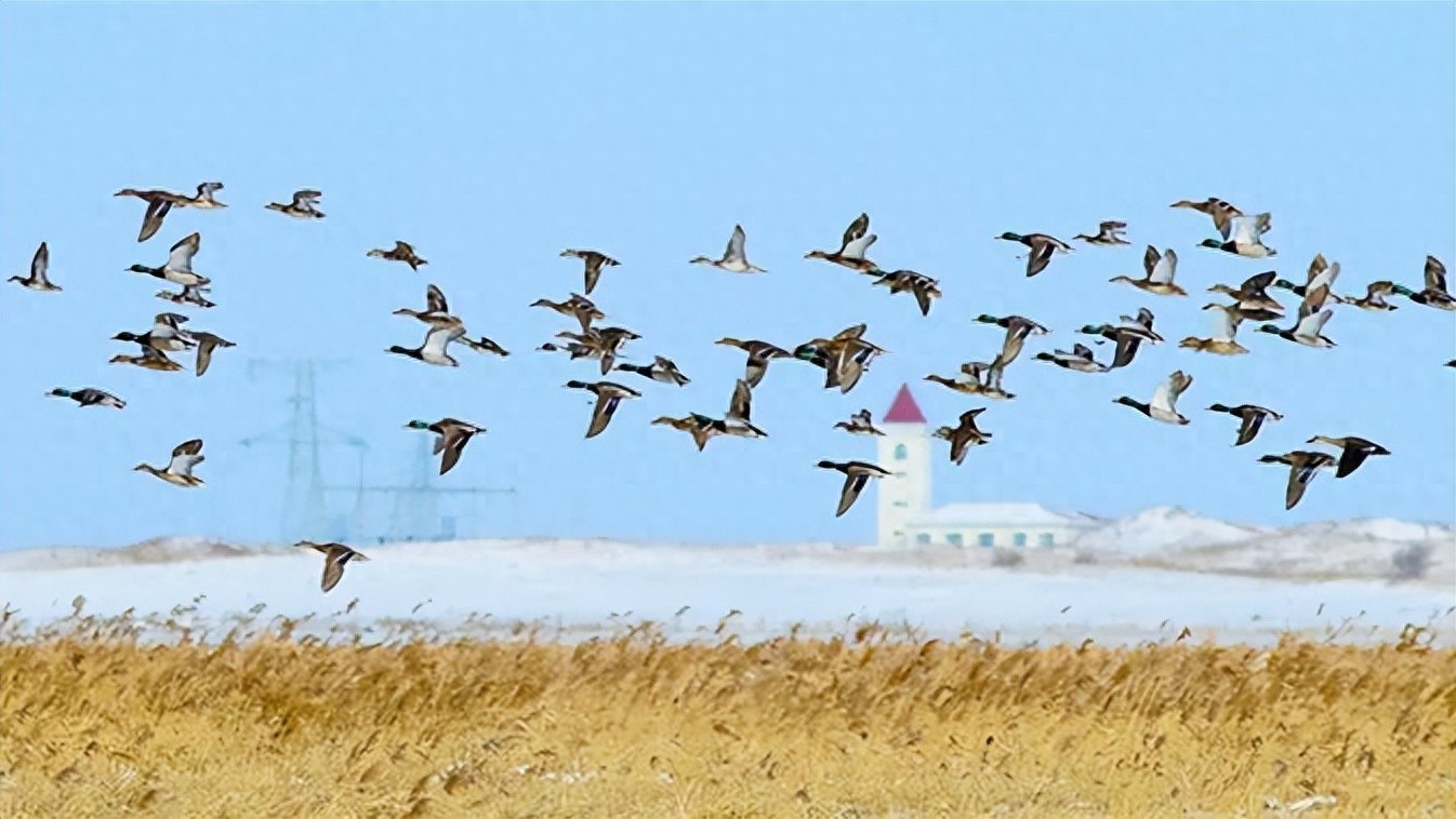 初冬时节,阿古拉湿地湖泊迎来大批迁徙途中的候鸟,广阔的湖面上羽翼翻飞,生机盎然,形成一幅幅水天相接的美妙画卷。