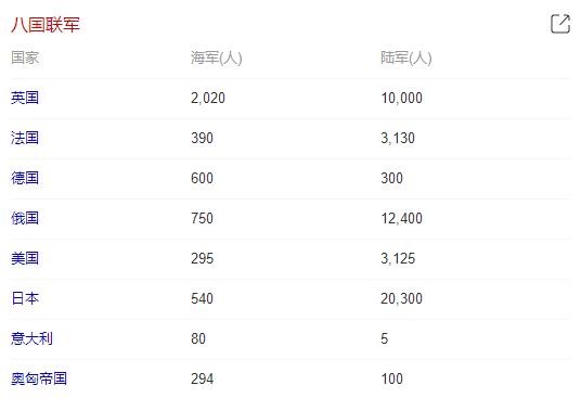 1900~1901年(清光绪二十六年至二十七年),由英、俄、日、美、法、德、意、奥八国派遣的军队组成的侵华联军。19世纪末,义和团反帝爱国运动爆发。1900年5月,列强决定联合出兵镇压义和团,陆续增兵北京和天津。6月10日,英国海军中将E.西摩尔率领联合特遣队2000余人分批由天津租界进犯北京,经廊坊落垡之战,伤亡近300人,被迫退回天津。6月17日,联军攻占大沽,7月12日,兵力达到1.7万人,火炮40余门。14日,占领天津。7月底至8月初,兵力增至3.4万人,并做好入侵北京的准备。8月4日,联军集中1.8万余人及81门火炮,自天津出发,先后攻占北仓、杨村、河西务、通州等战略要地。14日攻陷北京,尔后纵兵抢掠3天,并对北京实行分区占领。此后,继续增兵,自京、津出兵四向攻掠,控制了南至正定、北至张家口、东至山海关、西至娘子关的京津四周要隘。联军初期没有成立联合指挥部,作战时通过司令官联席会议分配任务。8月17日,决定由德国陆军元帅瓦德西任联军总司令。10月17日,瓦德西进京,设总司令部于紫禁城的仪銮殿,并成立军事殖民机构“北京管理委员会”于理藩院衙门。1901年6月14日,联军总司令部撤销。《辛丑条约》签订后,联军逐步撤离北京和直隶地区。
